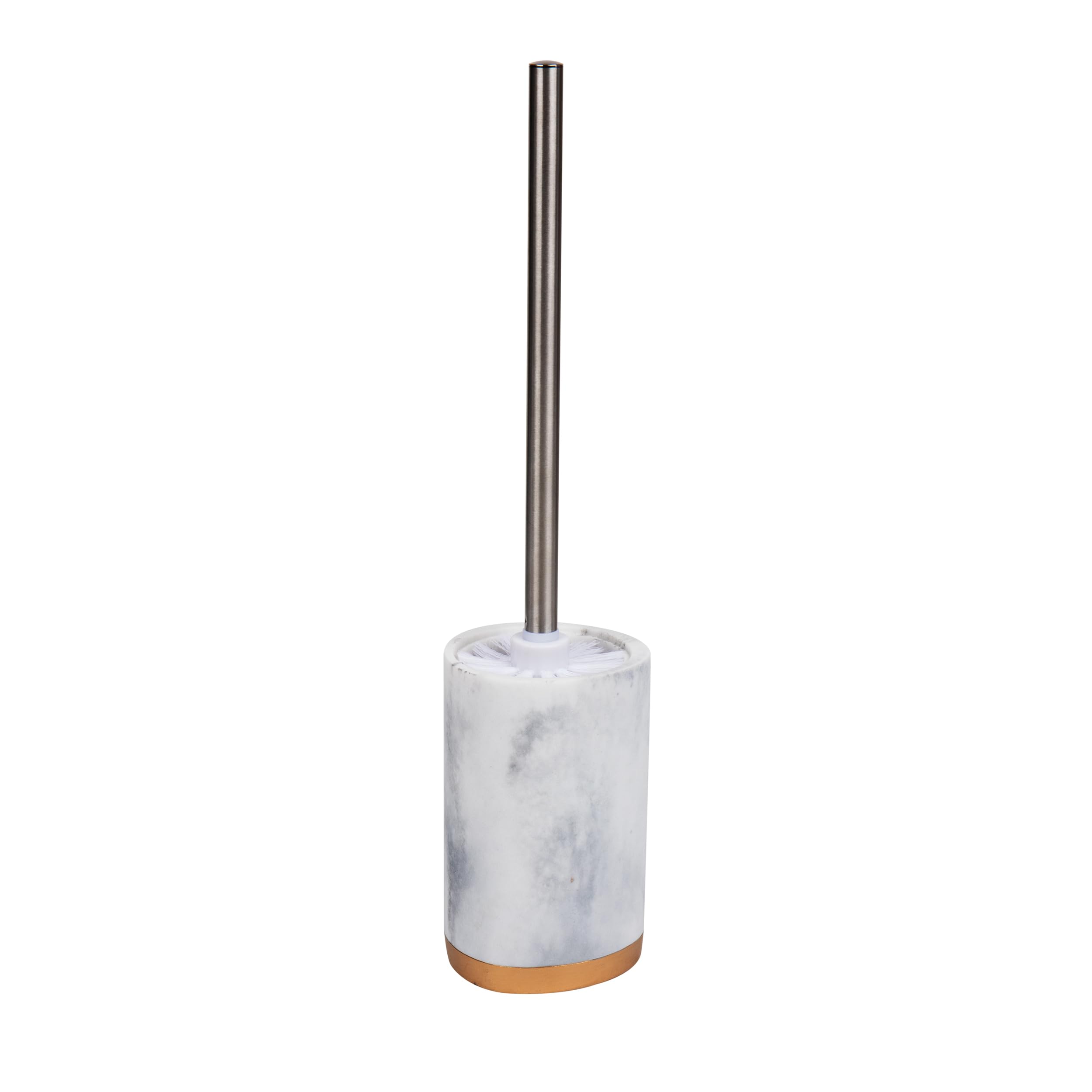 With its compact and slim body this toilet brush with holder is ideal for tight spaces and fits all types of bathroom decor